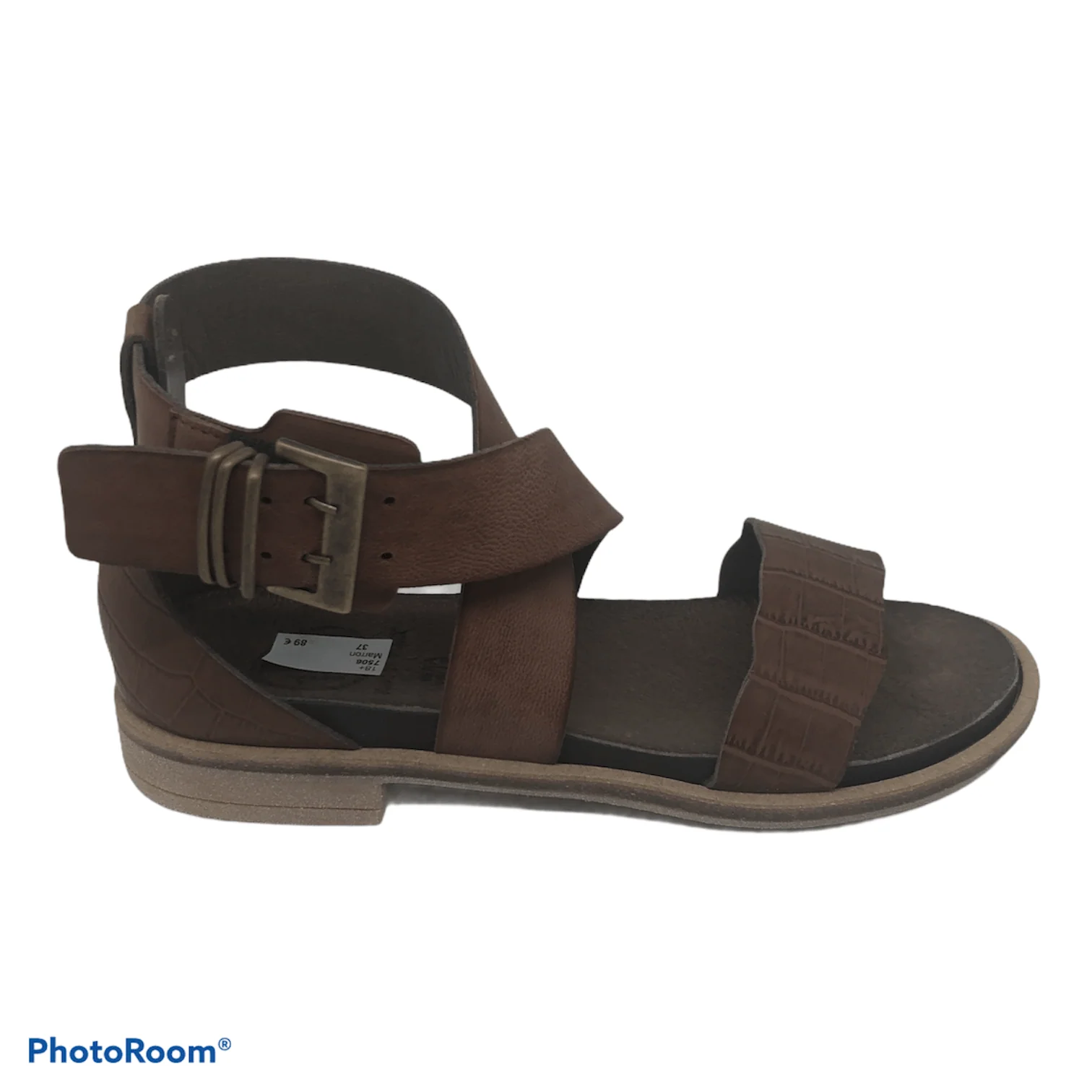 Nu pied tout cuir femme avec bride croisée sur la cheville avec semelle caoutchouc – coloris marron – semelle légèrement compensée – très confortable