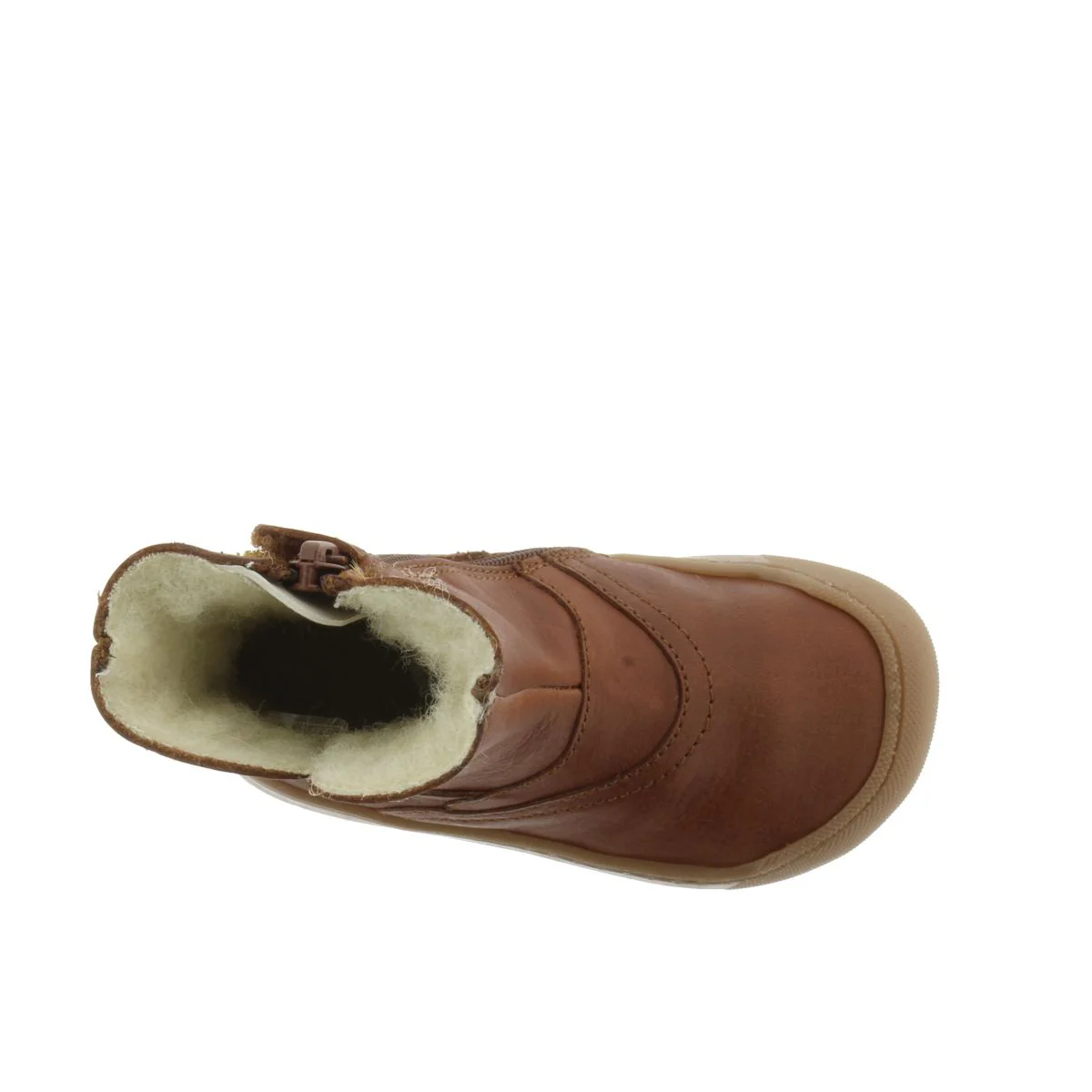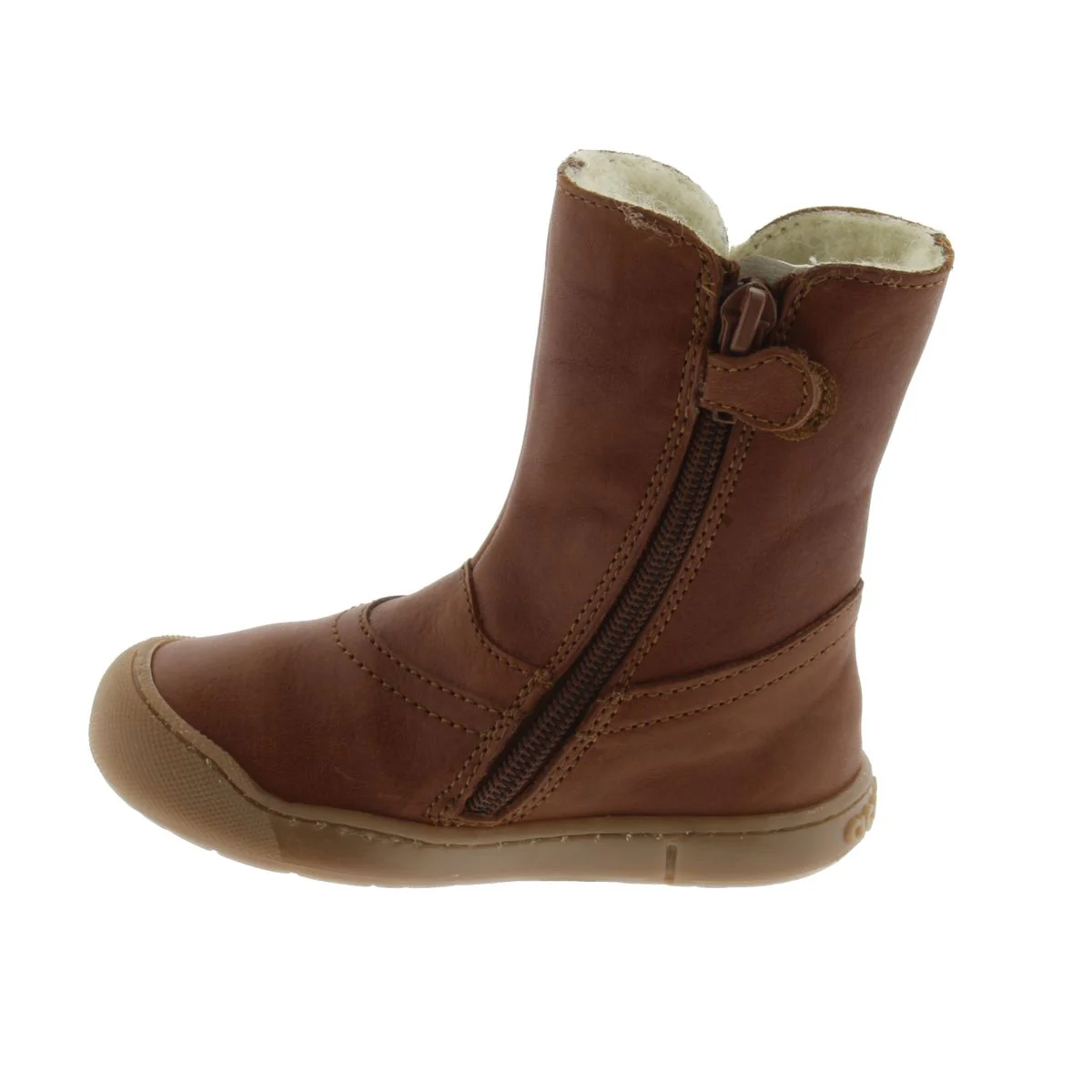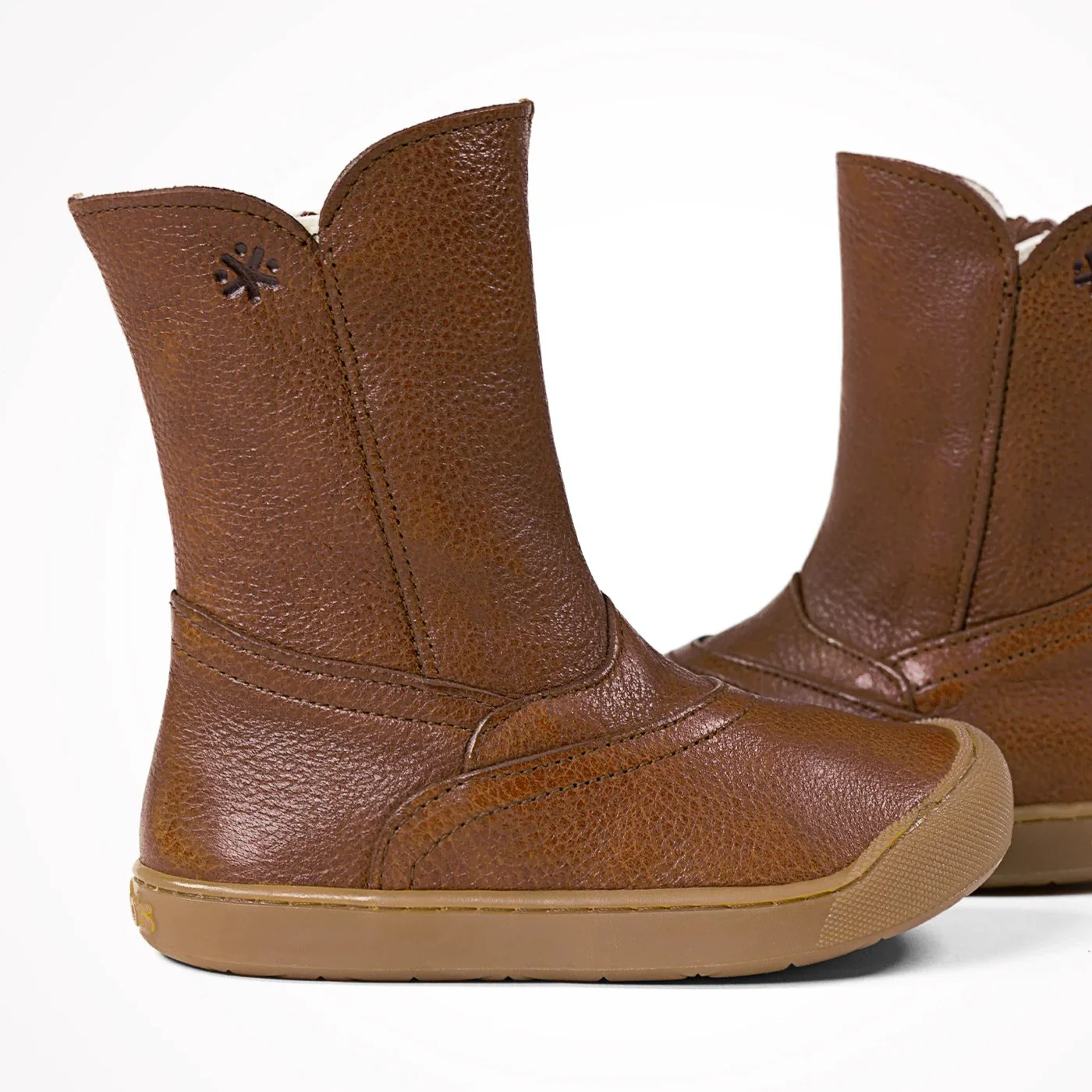 Dessus : cuir Couleur : marron Semelle intérieure : laine Doublure : laine Système de fixation : fermeture éclair Semelle extérieure : caoutchouc Usage : utilisation en extérieur – Le bout est protégé par du caoutchouc mais n’apprécie pas des frottements intenses comme avec une draisienne qui pourraient abîmer le cuir.