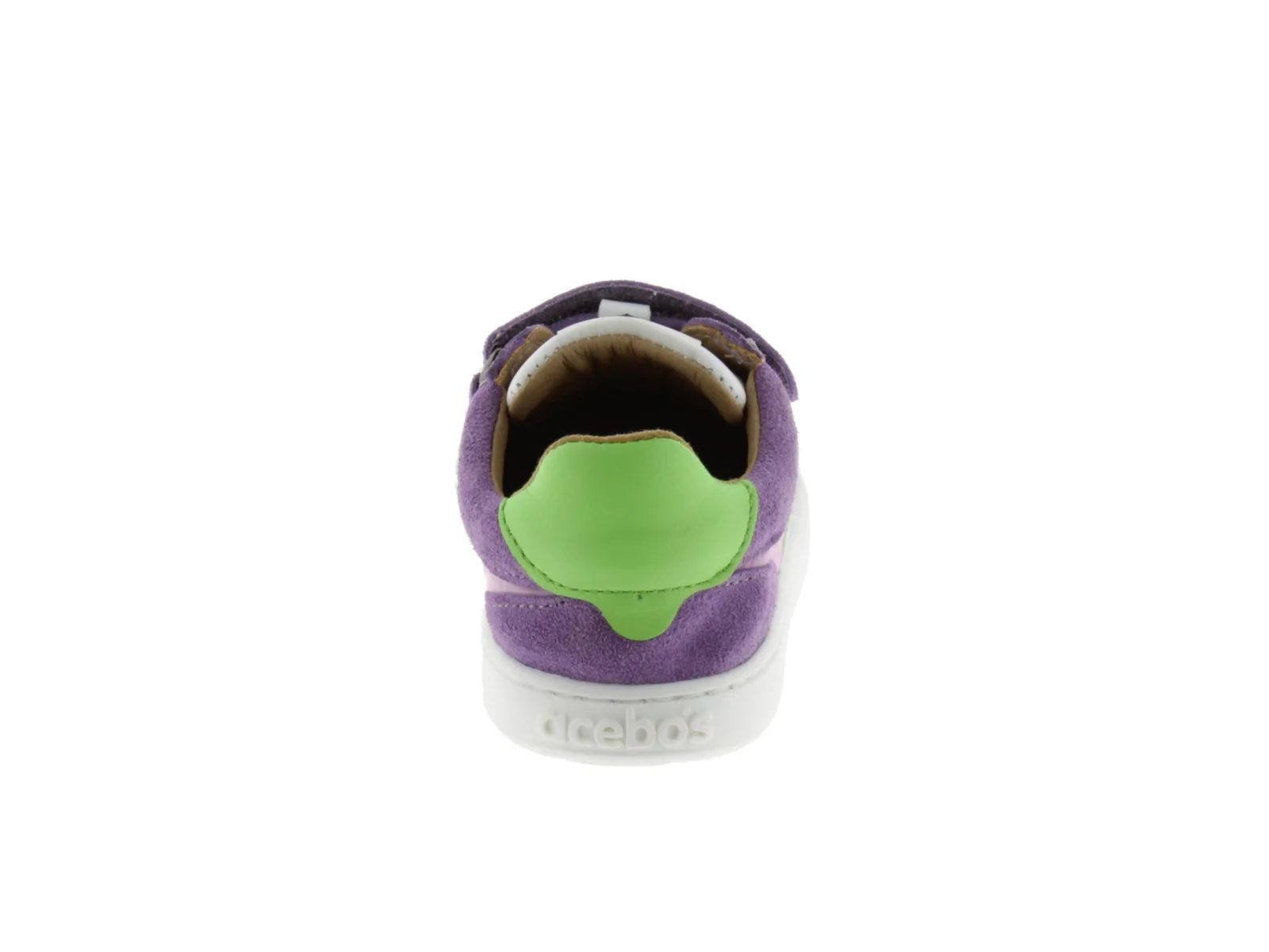Dessus : cuir et textile Couleur : violet, lila, vert, étoile blanche Semelle intérieure : cuir Doublure : cuir Système de fixation : deux scratchs Semelle : caoutchouc recyclé Usage : utilisation en extérieur – Des frottements intenses comme avec une draisienne pourraient abîmer le cuir.