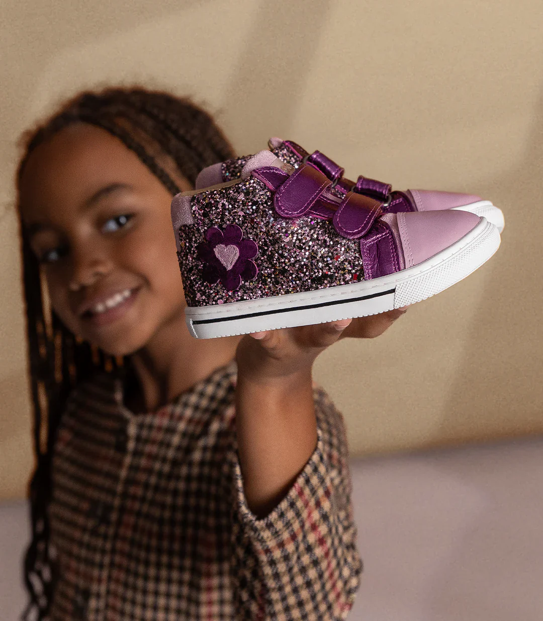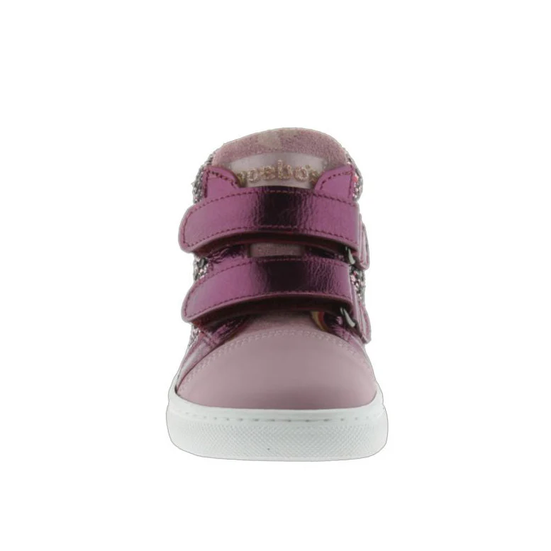 Dessus : cuir, textile et caoutchouc Couleur : rose avec du brillant Semelle intérieure : cuir Doublure : cuir Système de fixation : deux scratchs pour les enfiler facilement Semelle extérieure : caoutchouc Usage : utilisation en extérieur Le bout est protégé par du caoutchouc mais n’apprécie pas des frottements intenses comme avec une draisienne […]