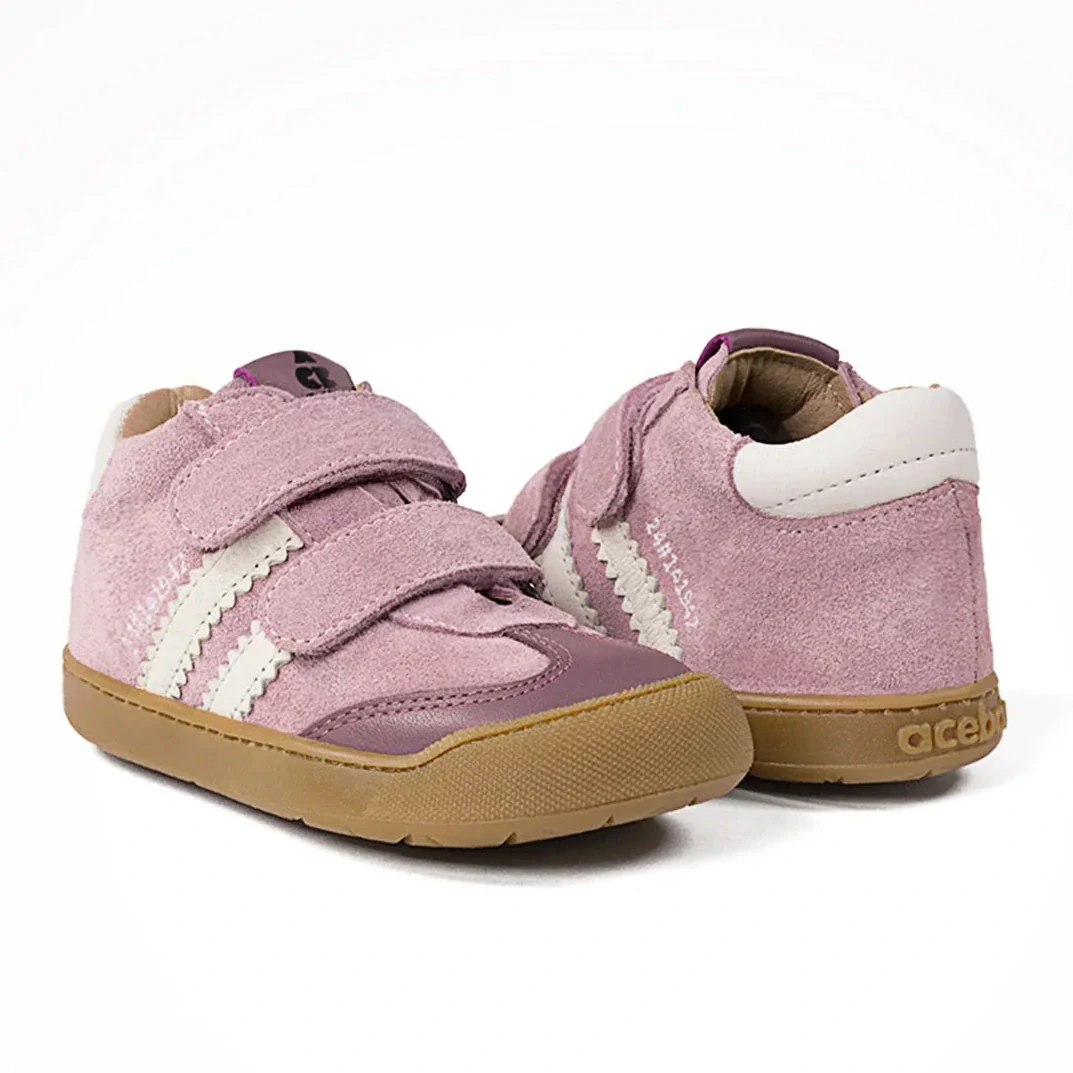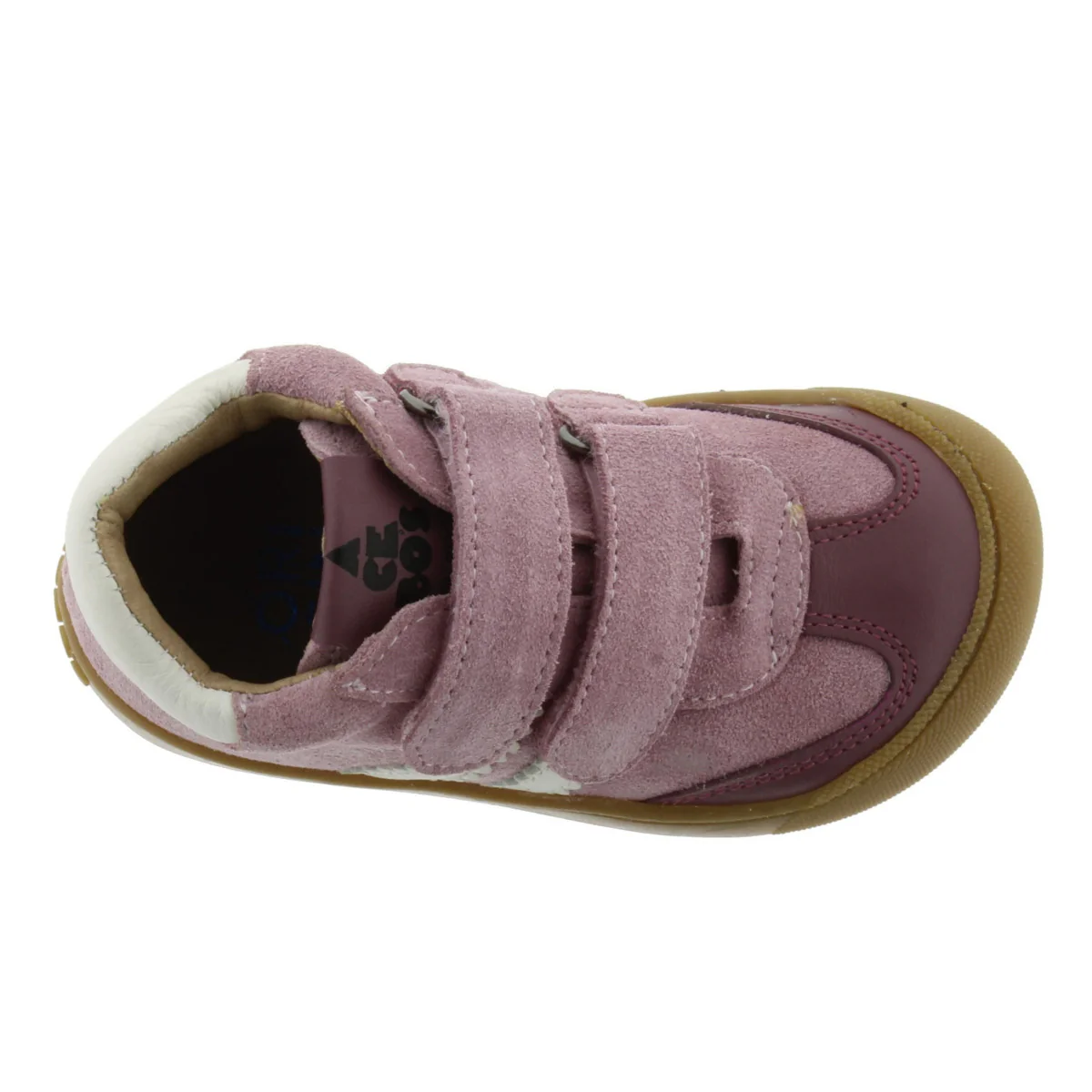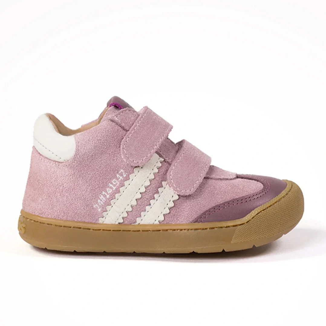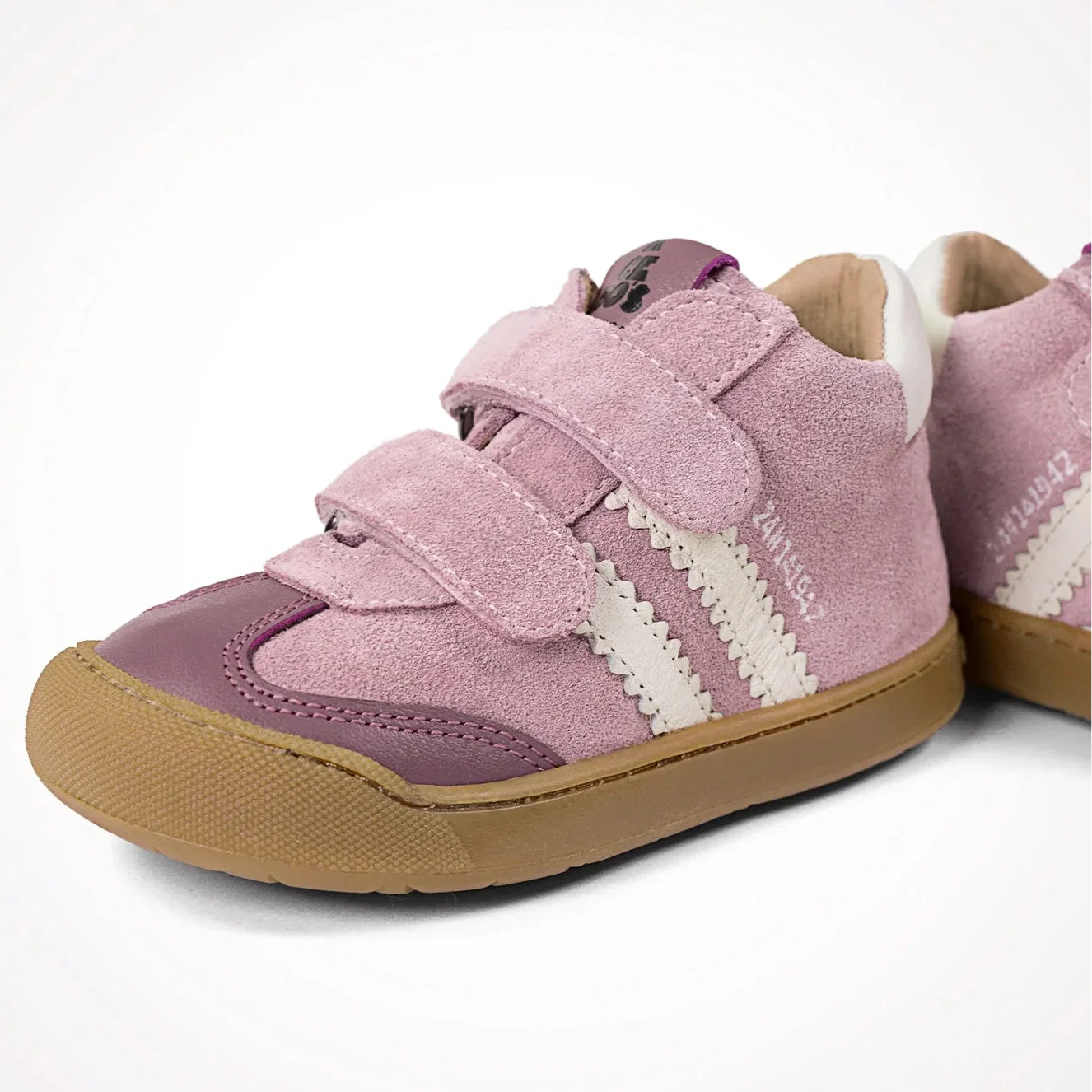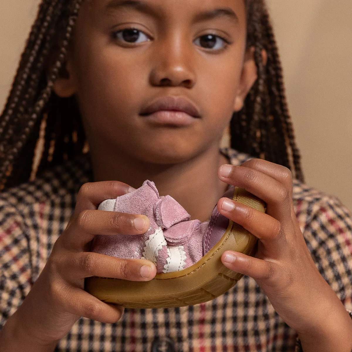 Dessus : cuir suédé et cuir Couleur : rose Semelle intérieure : cuir Doublure : cuir Système de fixation : deux scratchs Semelle : caoutchouc recyclé Usage : utilisation en extérieur Des frottements intenses comme avec une draisienne pourraient abîmer le cuir.