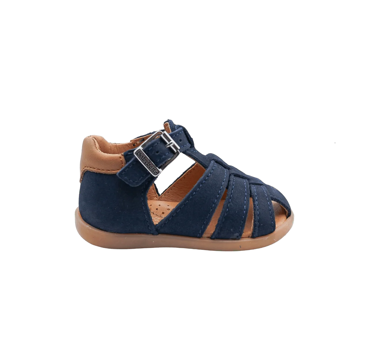 Sandales nu pieds tout cuir Couleur marine Marque Babybotte Modèle GIMMY Chaussant normal Fermeture boucle Babybotte la marque référence des botillons premiers pas Alliant toujours la mode avec son savoir faire pour les meilleurs chaussants!