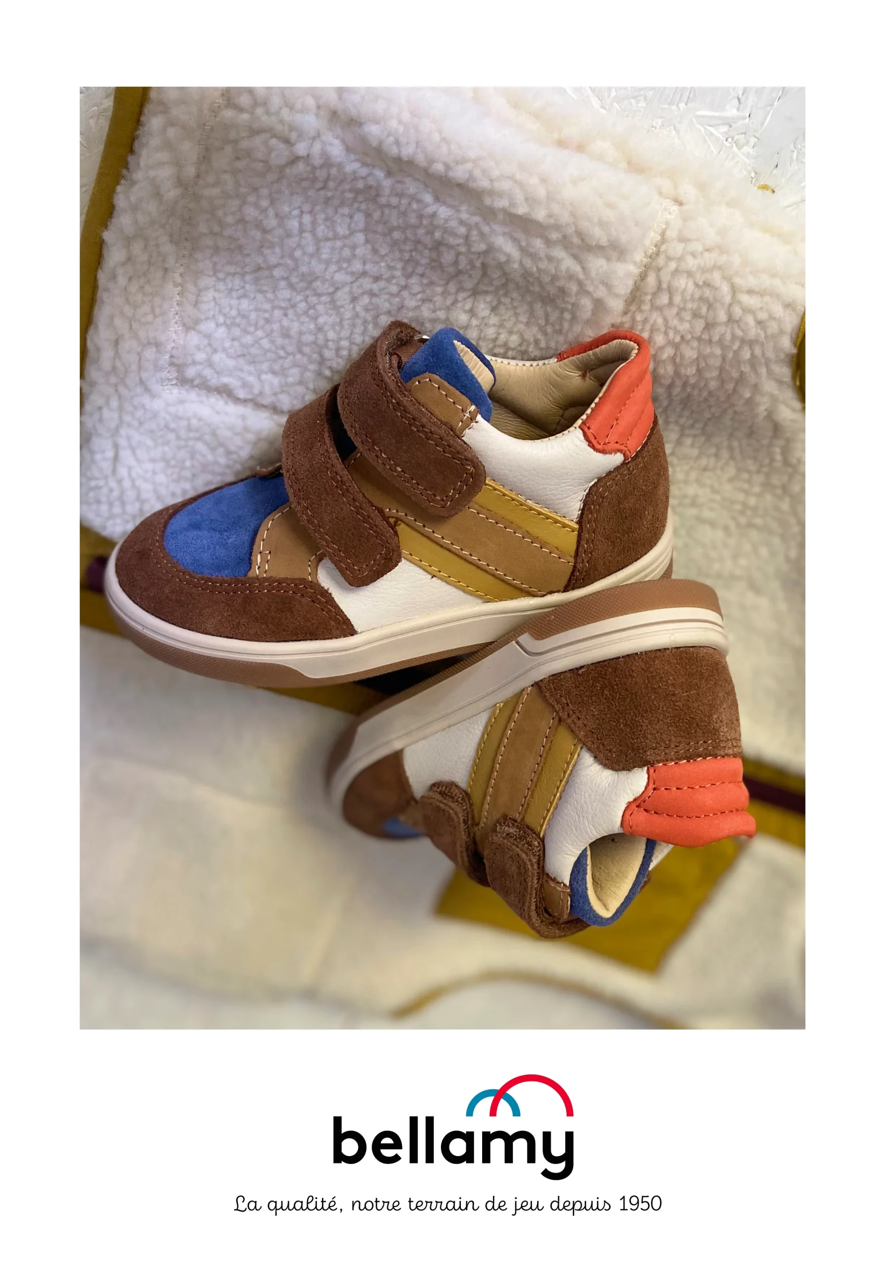 Chaussures Basses Baskets BELLAMY modèle LOURSON Couleur Marron Chaussant normal Fermeture velcro Voici une marque française qui s’inscrit dans la démarche du made in France! Des chaussants exclusifs dits évolutifs pour faire durer la pointure et des chaussons dont la qualité n’est plus à prouver…Essayer c’est approuvé