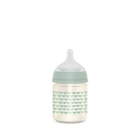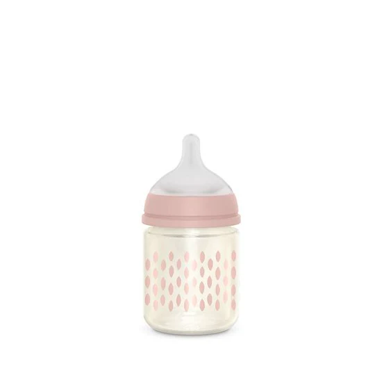 Biberon en verre Bonhomia 120 ml, la nouvelle collection Premium de Suavinex. Biberon avec Tétine anatomique réversible SX Pro en Silicone, à débit Lent, +0 Mois. La nouvelle tétine réversible Suavinex SX Pro est l’étape ultime vers une alimentation plus naturelle. Conçue pour respecter le développement bucco-dentaire de bébé. La tétine anatomique réversible SX Pro maintient la langue dans la même position naturelle que lorsque le bébé tète au sein. Tétine de biberon à débit lent (+0 mois). Laisse passer peu de liquide, indiqué pour les prises de lait des premiers jours de vie ou pour l’eau plus tard. Avec une valve anticolique. Tétine en silicone fin ultra-doux avec finition sablée qui imite la texture et la consistance du mamelon maternel, offrant ainsi une chaleur maximale, un mouvement super flexible et l’adaptation maximale à la forme du palais. Caractéristiques de la Tétine anatomique réversible SX Pro : Bout Plat et Symétrique : Laisse à la langue de l’espace pour se reposer. Col centré par rapport à la Base : Il s’adapte et est plus confortable lorsque bébé grandit. Col long de 20 mm : Il atteint la jonction entre le palais dur et mou.
