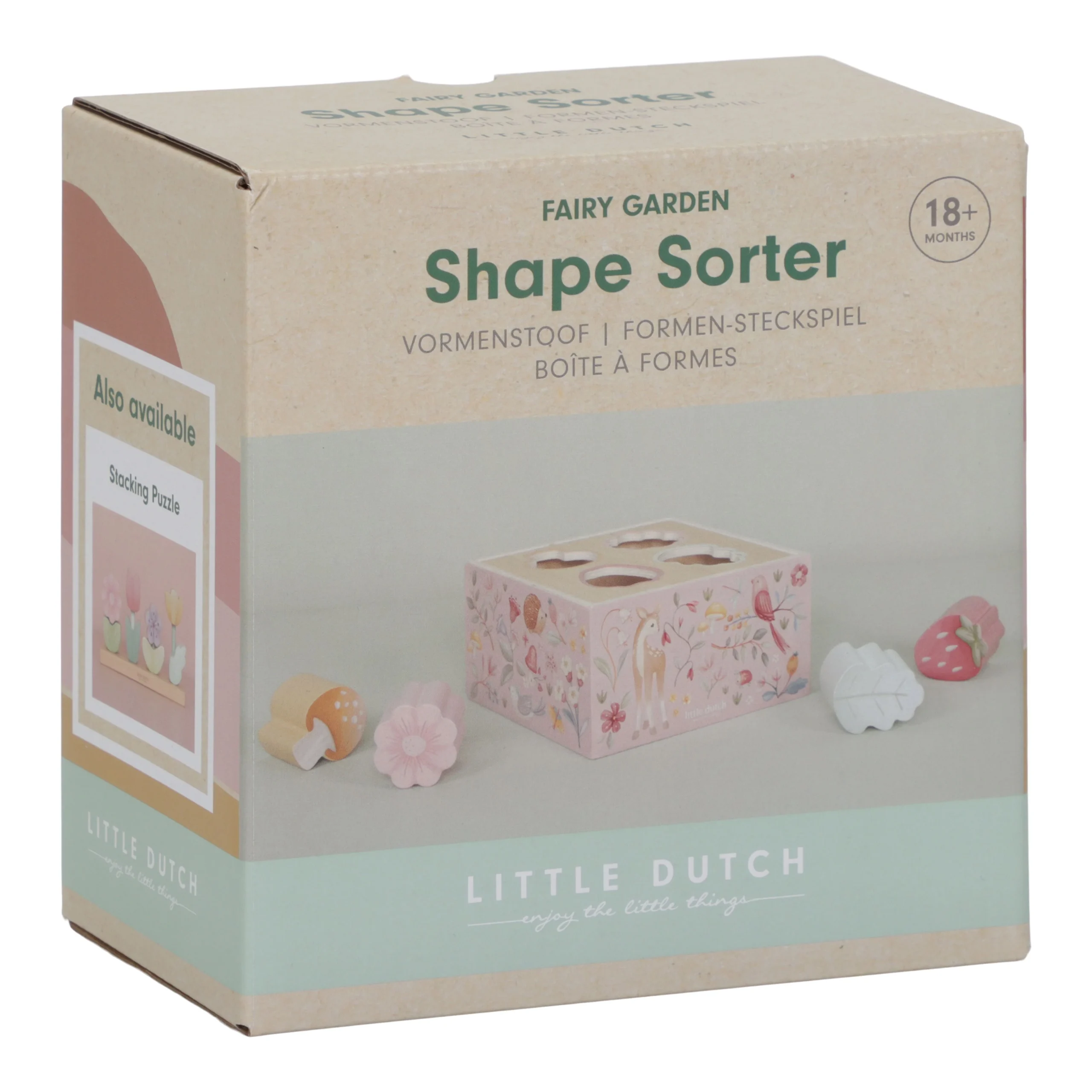 Trouvez l’ouverture qui correspond à la forme de la fraise ! Et où vont le champignon, la fleur et la feuille ? Ce trieur de formes en bois est un jeu de tri créatif qui apprend à votre enfant à reconnaître et à associer les formes et les couleurs, tout en améliorant sa coordination oculo-manuelle. La boîte est fabriquée en bois robuste et illustrée d’une charmante scène du Jardin des Fées. Les formes sont conçues pour que les petites mains puissent les saisir facilement et les pousser dans l’ouverture appropriée. Ce jouet classique est à la fois éducatif et amusant !