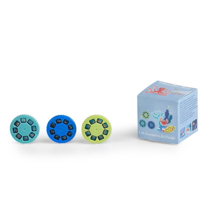 Recharge de trois disques à histoires de la collection Les aventures de Paulie compatibles avec toutes les lampes à histoires Moulin Roty. Pratique, les adeptes des lampes à histoires pourront collectionner facilement les disques de toutes les gammes !