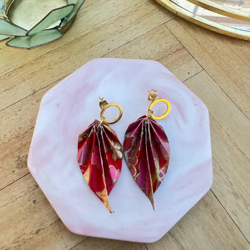 Chaque feuille est un origami miniature, chaque pli est délicatement réalisé à la main à partir d’un véritable papier origami japonais. Si vous souhaitez les rehaussées d’une perle en pierre précieuse naturelles, n’hésitez à me contactez directement par message.