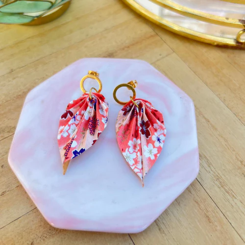 Boucles d’oreilles pendantes en papier d’origami japonais – Feuille
