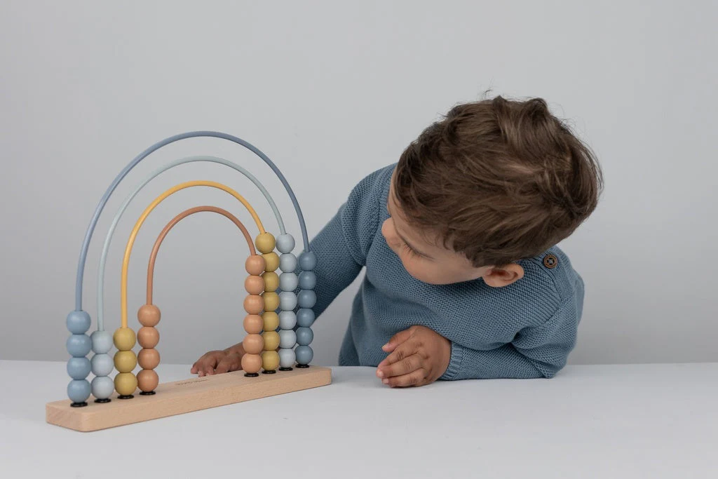 Comptez de 1 à 10, dans toutes les couleurs de l’arc-en-ciel ! Cet adorable boulier en forme d’arc-en-ciel est une façon amusante de compter. Faites glisser les perles colorées d’un côté à l’autre et explorez les différentes teintes de bleu, de jaune et de marron. Au fur et à mesure que votre enfant s’amuse et acquiert les notions de base du comptage, il développe sa motricité fine. Les enfants plus âgés peuvent pratiquer leurs mathématiques en faisant des exercices de comptage sur le boulier. Un excellent moyen de jouer et d’apprendre en même temps !