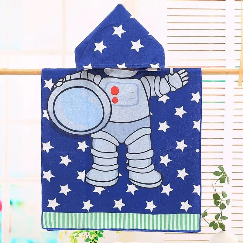 Cape de Bain Bébé à Capuche – Dinosaure ou Astronaute, Microfibre Douce et Séchage Rapide