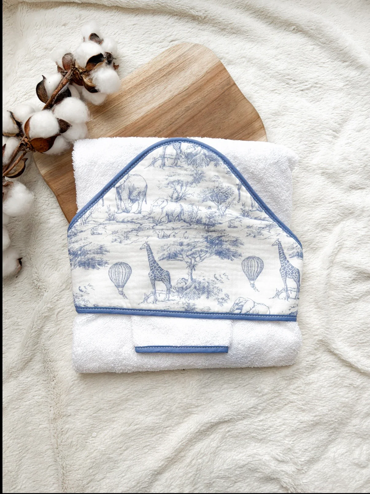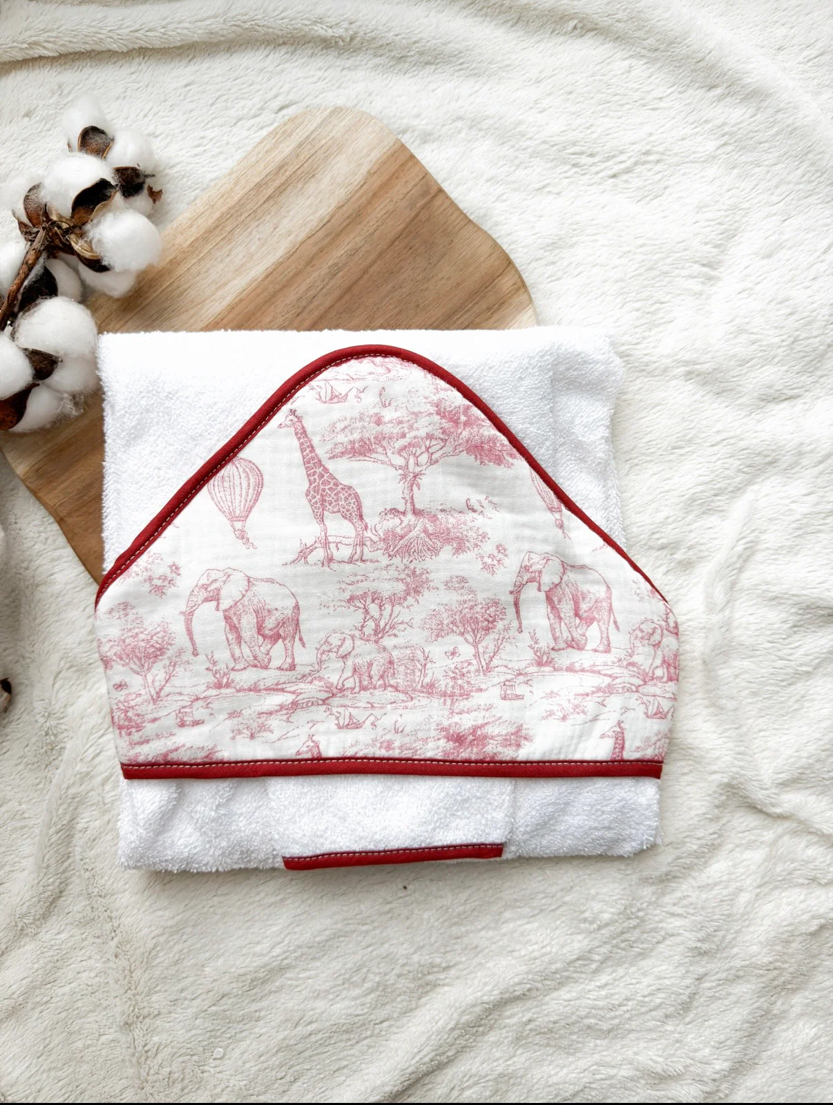 Rendez la sortie du bain encore plus douce avec cette cape de bain motif savane, parfaite pour envelopper bébé dans un cocon de chaleur.