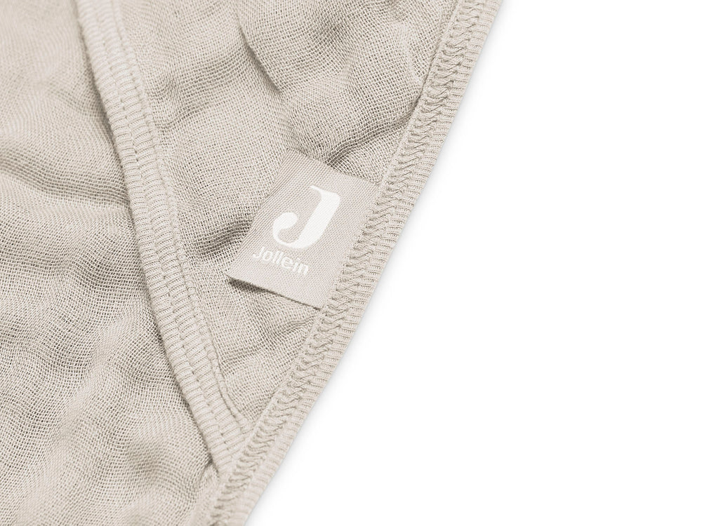 Jolie cape de bain hydrophile de Jollein. La cape de bain mesure 75×75 cm et est disponible en quatre couleurs tendance. Rose, châtaigne, nougat et gris. La cape de bain est fabriquée en 100 % coton.