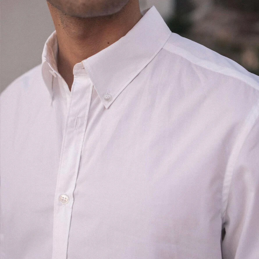 Chemise homme en popeline de coton biologique, coupe ajustée. Légère, élégante et agréable à porter au quotidien, elle se distingue par ses finitions raffinées : col boutonné, patte de boutonnage américaine et boutons partiellement biosourcés. Le tissu est certifié sans substances toxiques. Un modèle éco-conçu et fabriqué en France pour une allure à la fois moderne et responsable.