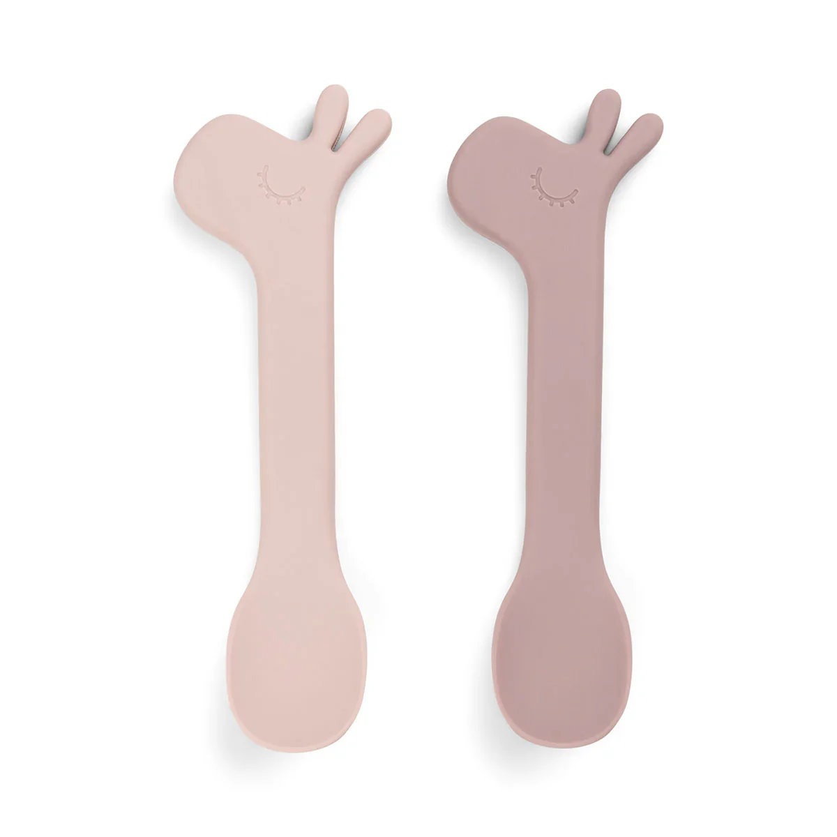 Un lot de 2 cuillères pratiques en deux tons de Rose. Parfaites pour manger tous les plats préférés et essayer de nouveaux aliments.