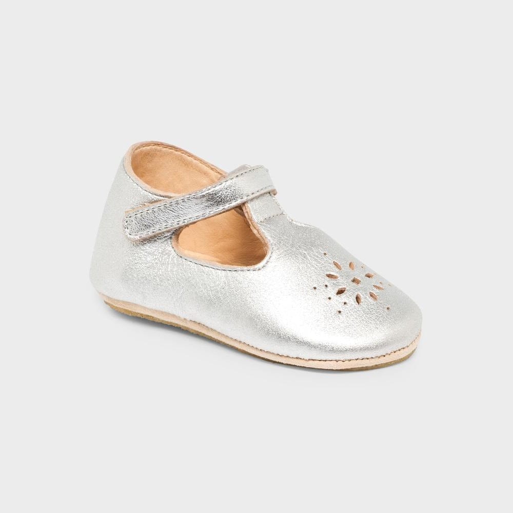 chausson forme ballerine à bride Couleur argent Chaussant normal Fermeture velcro Easy Peasy: Le meilleur du chaussons cuir, Elastiqué ou à velcro avec une patte arriere pour facilter l’enfilage, Fabrication irréprochable, tannage végétal sans chrome, colle à l’eau