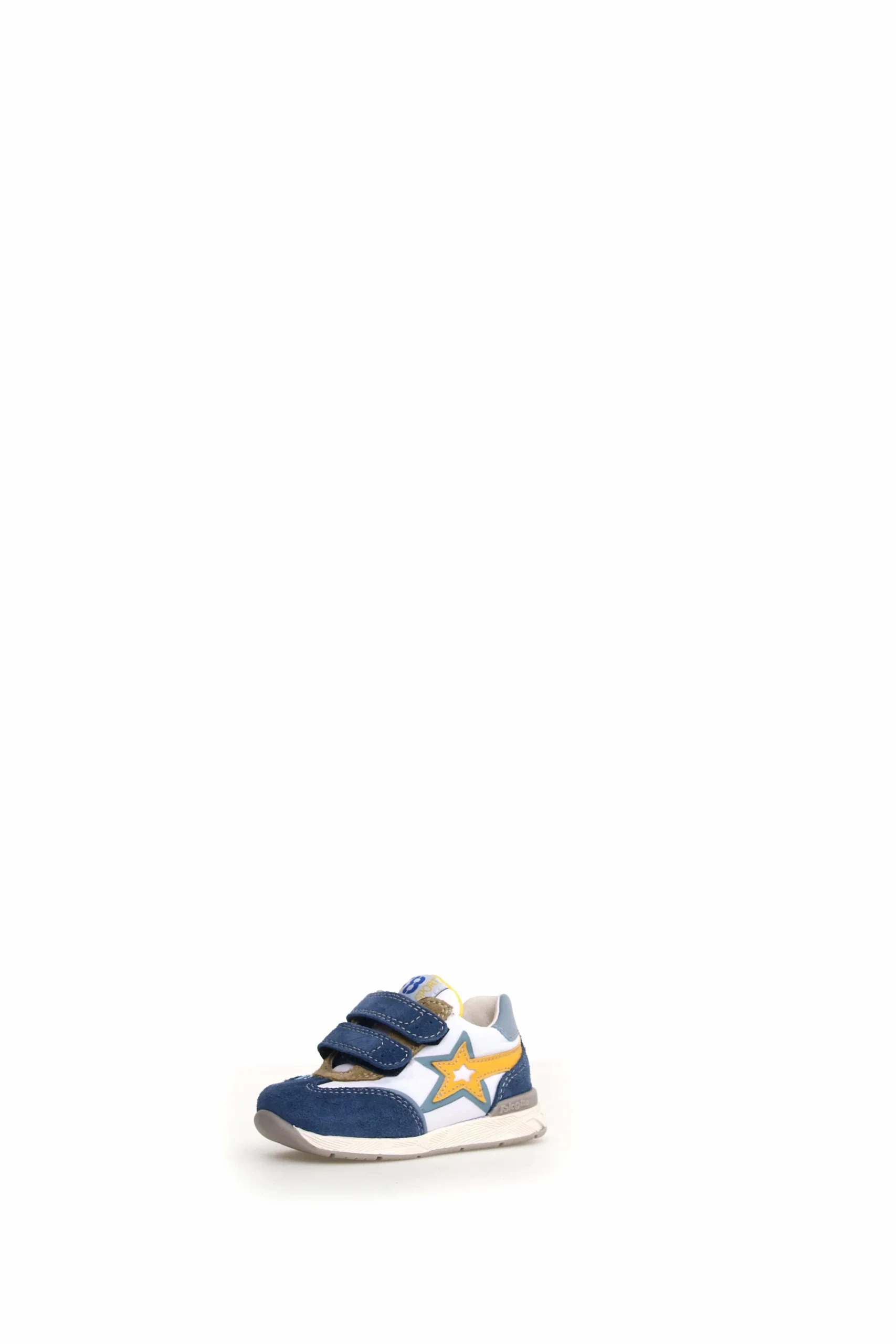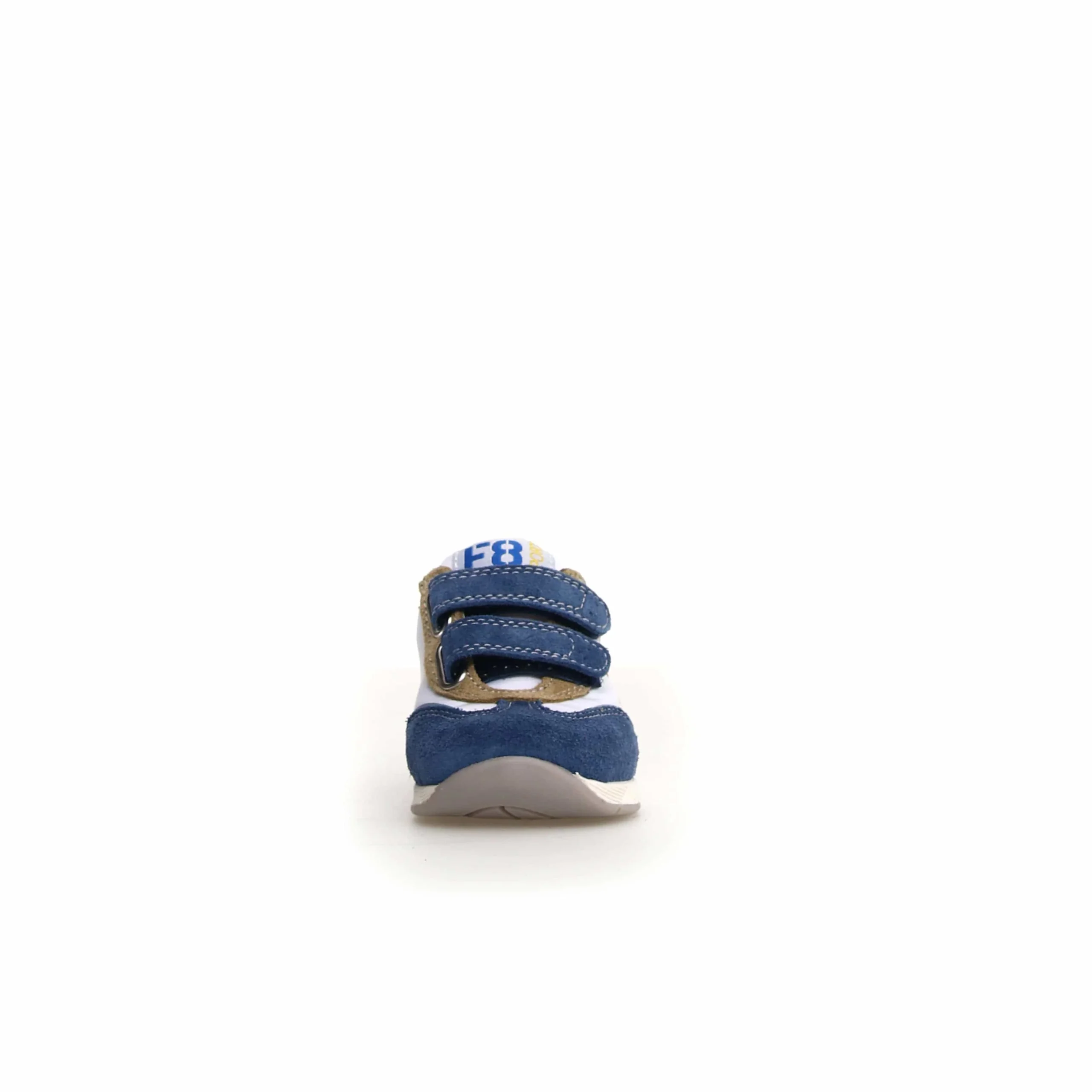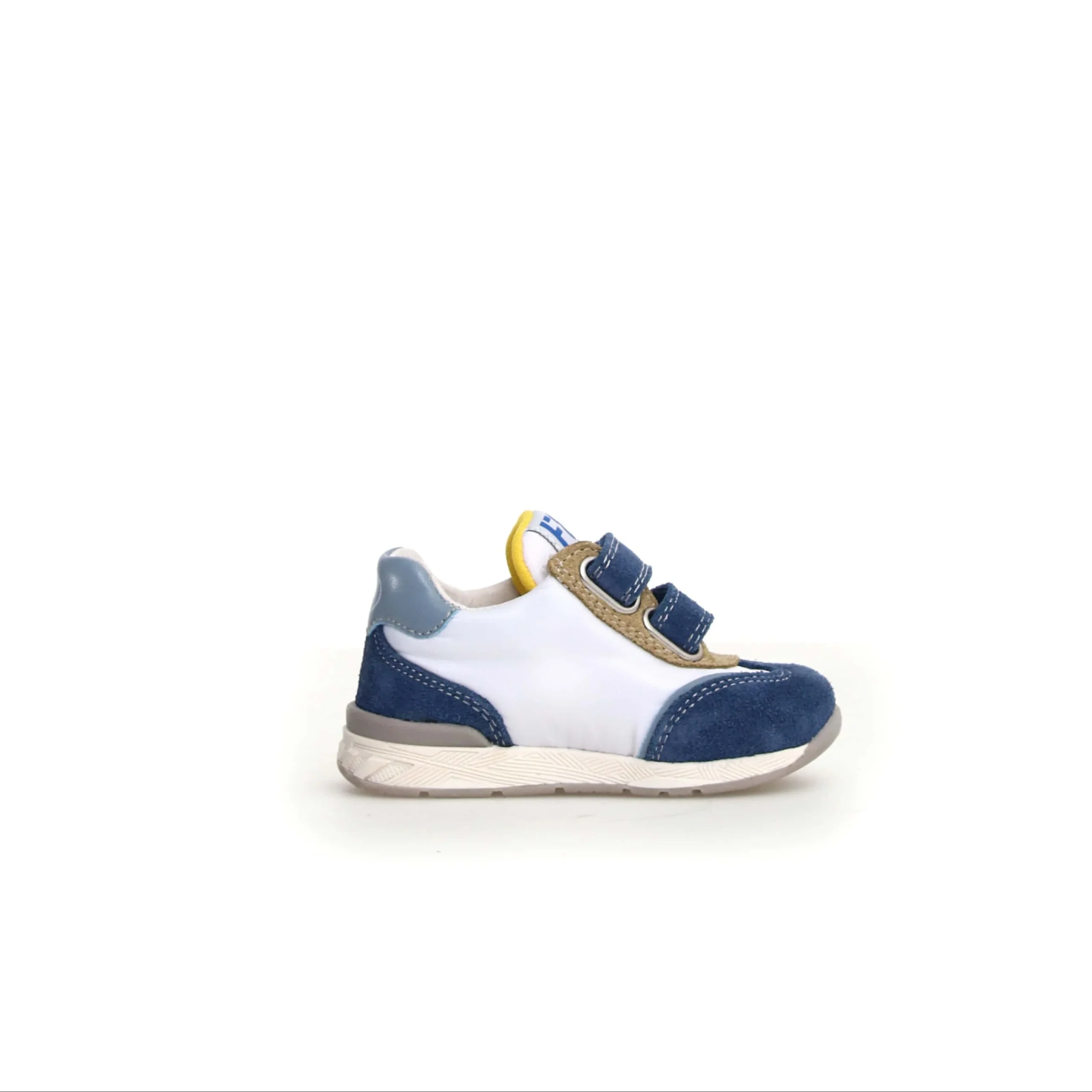 Baskets Cuir Couleur Azur Blanc Jaune marque FALCOTTO modèle NEW FERDI Chaussant normal Fermeture velcro tout cuir avec semelle en caoutchouc léger et souple