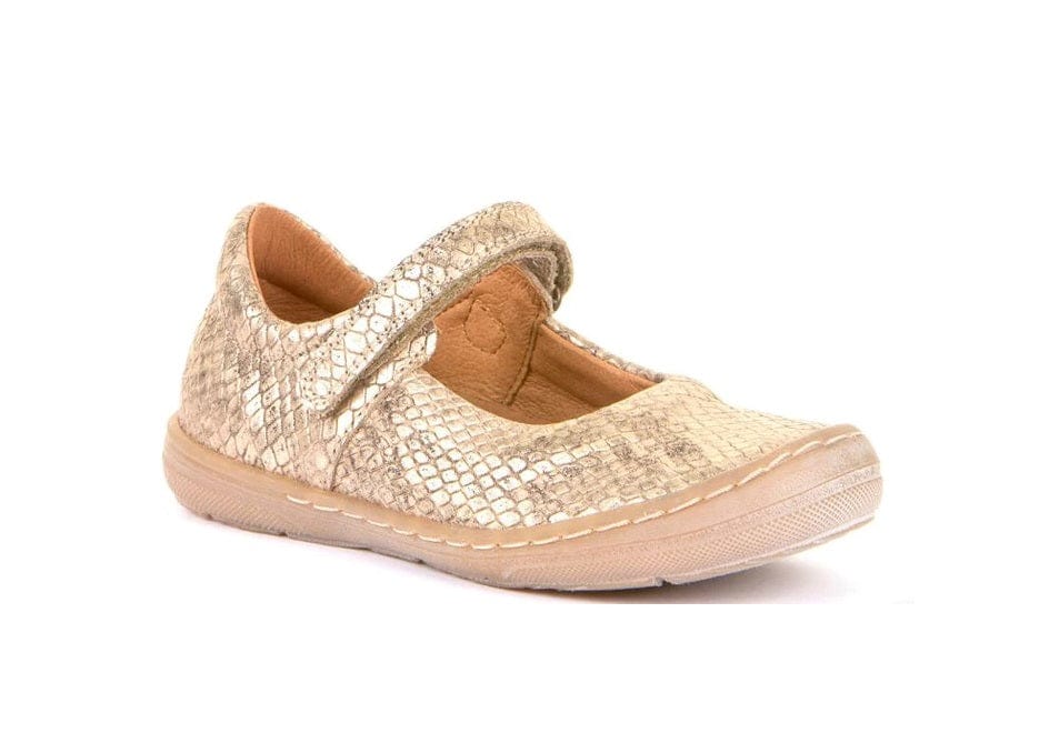 Chaussure ballerine à bride Couleur or Chaussant fin Fermeture velcro Froddo Chaussure souple en cuir avec semelle en caoutchouc léger Tannage naturel