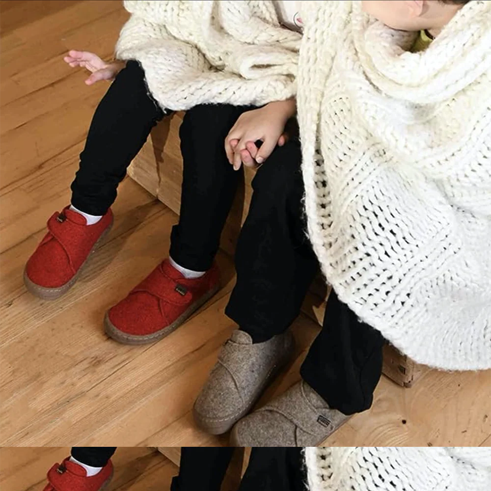 Tout le chausson est doublé de laine feutrée naturelle pour garder les petits pieds au chaud. La laine est un thermorégulateur, les pieds ne transpirent pas. Ces chaussons peuvent être portés avec ou sans la semelle amovible.
