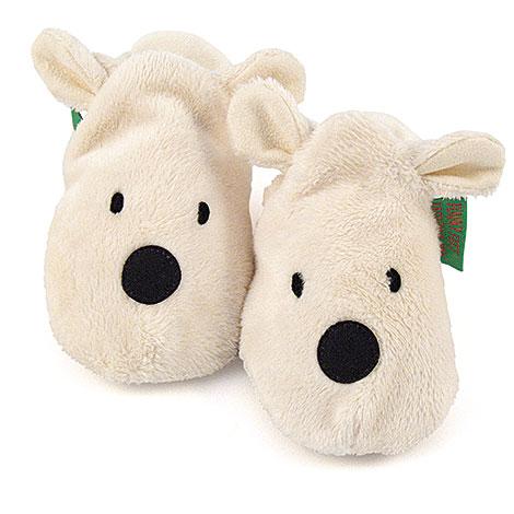 Dessus : ultrasuede façon peluche Couleur : blanc avec un ours blanc Semelle intérieure : 100% coton. A partir de la pointure 2-3, la semelle est rembourrée d’une couche de polaire façon fausse laine de mouton. Doublure : 100% coton Semelle extérieure : cuir retourné Fermeture : simplement à enfiler avec un élastique à la […]