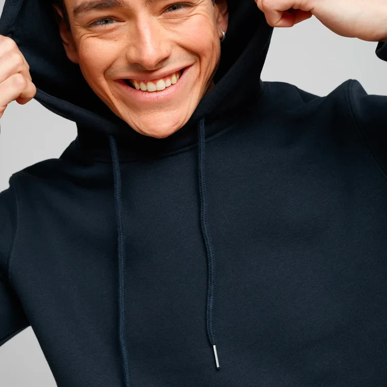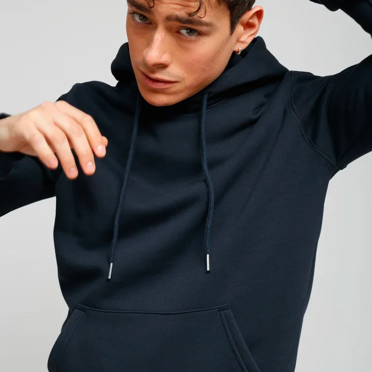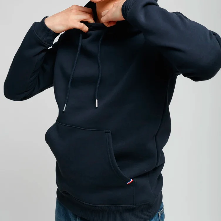 Hoodie bleu marine homme fabriqué en France, à Bobigny.