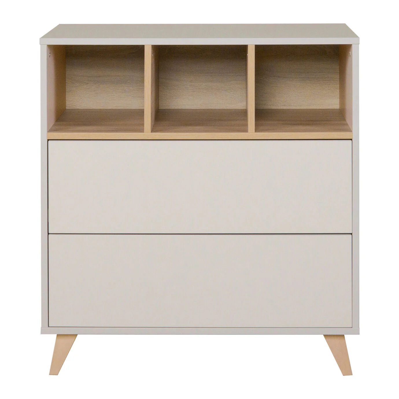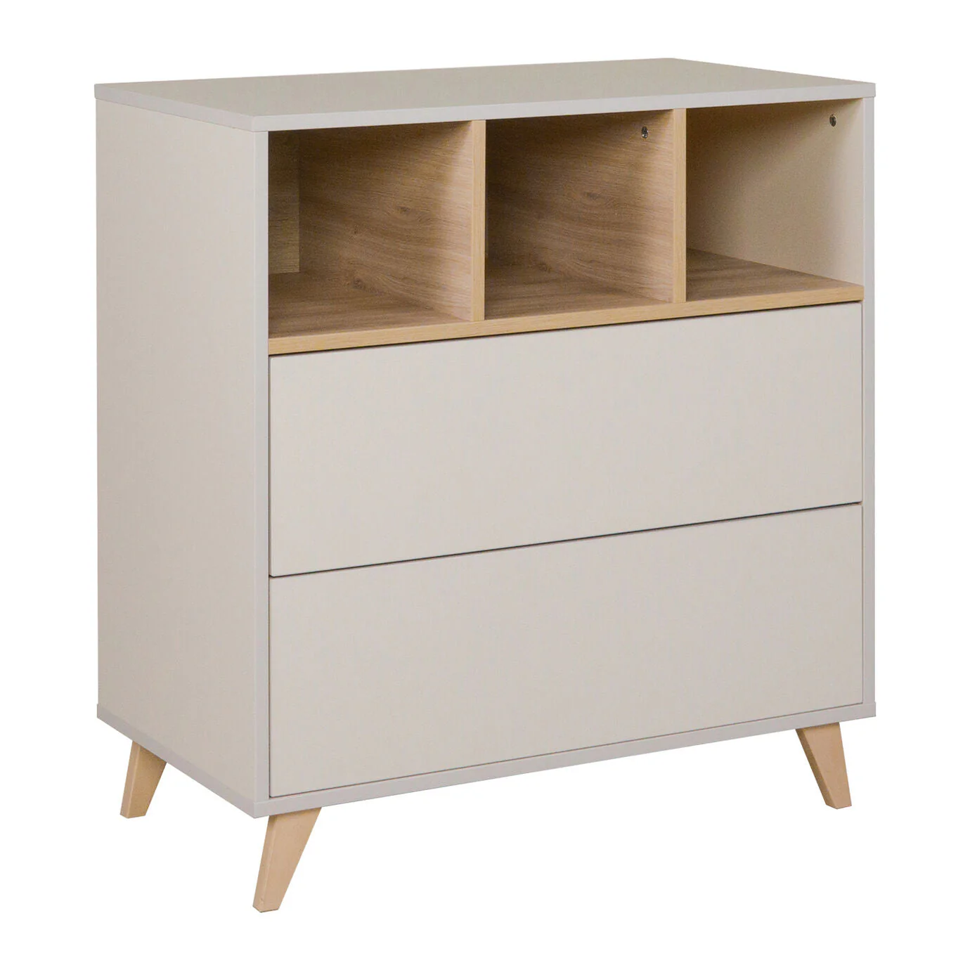 DÉLAI DE LIVRAISON ( 2 – 4 SEMAINES ) Muni de 2 tiroirs et poignée invisible Extension pour plan à langer en option Muni de 4 pieds en hêtre naturel Dimension : L86xB48xH92 cm