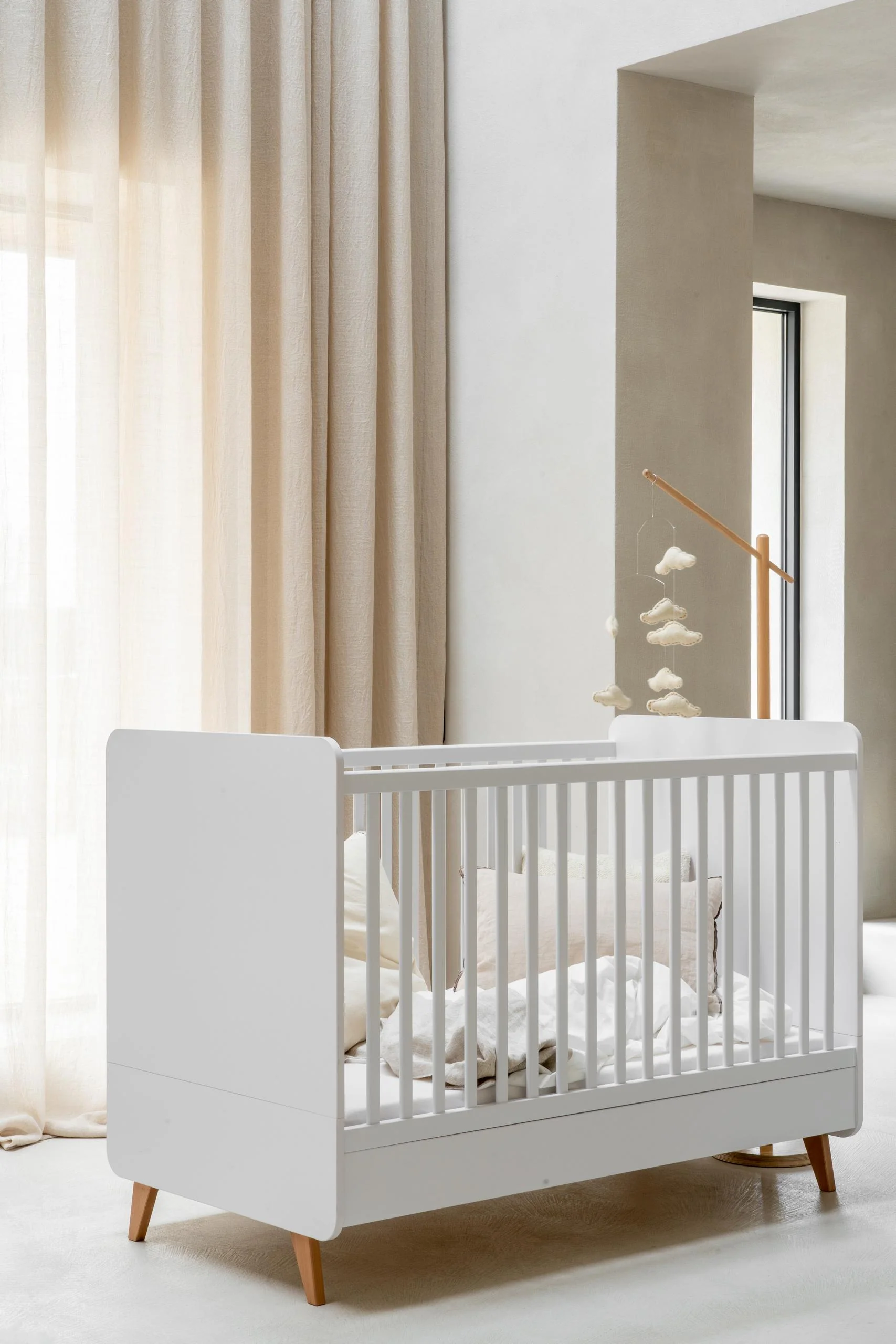 Le lit Loft 140 x 70, avec des dimensions de 124 x 65 x 95, offre un mélange réfléchi de fonctionnalité et de design intemporel, spécialement conçu pour les tout-petits. Avec trois hauteurs de matelas réglables (29 cm, 44 cm et 59 cm), ce lit évolue avec votre bébé, offrant un environnement de sommeil adaptable et confortable.