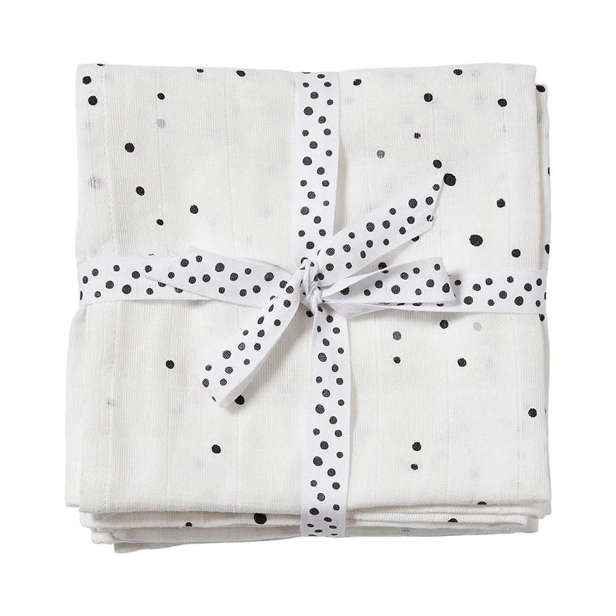Un ensemble de deux grands tétras en mousseline doux en blanc parsemé de pois monochromes Dreamy.