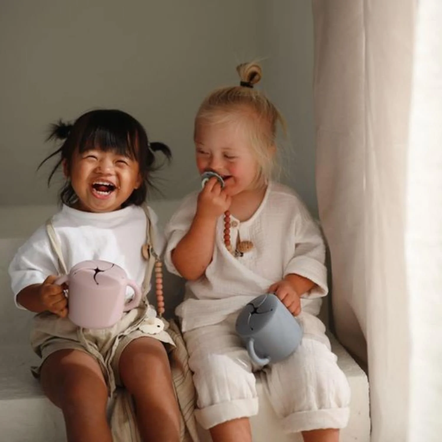 Ces boîtes à en-cas de Mushie sont très pratiques, que ce soit en déplacement ou à la maison. Mettez-y des petits biscuits ou des baies.