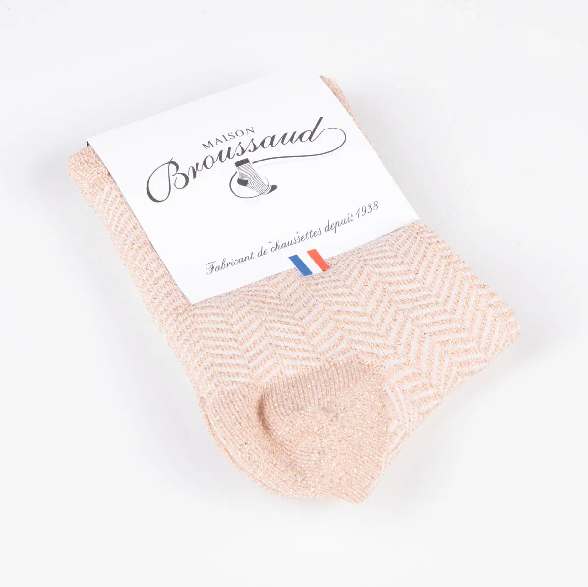 Comme une envie d’apporter un peu de couleur à votre look ? Pour briser la monotonie des chaussettes noires, craquez pour cet accessoire de mode original et tendance de la Maison Broussaud. La paire de chaussette « Les chevrons » se pare d’une couleur rose très élégante, douce et féminine. Décorée d’un motif de chevrons très chic, elle est la touche subtile d’originalité qui réveillera n’importe quelle tenue. Cette chaussette est parfaite avec un pantalon noir et des escarpins, ou un jean et une jolie paire de baskets blanches. Conçue pour toutes les occasions, elle deviendra vite la petite préférée de votre dressing.