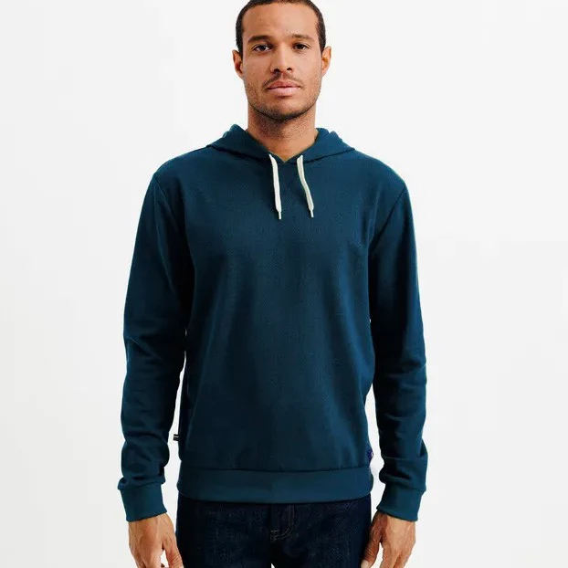 Sweat à capuche homme bleu marine fabriqué en France, à Roubaix.