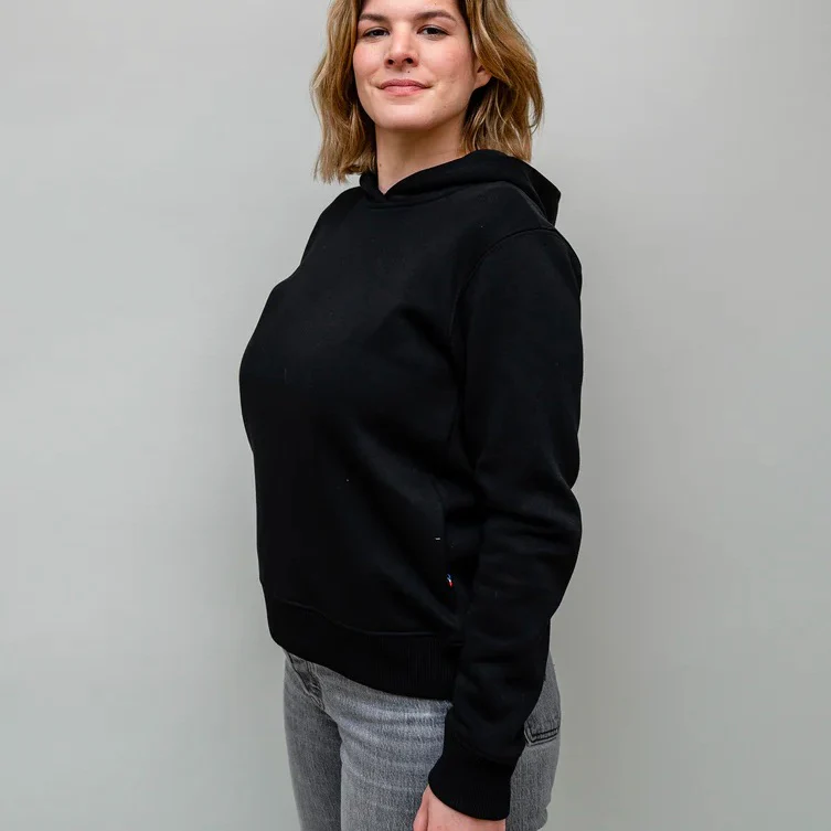 Sweat à capuche femme fabriqué en France, à Bobigny.
