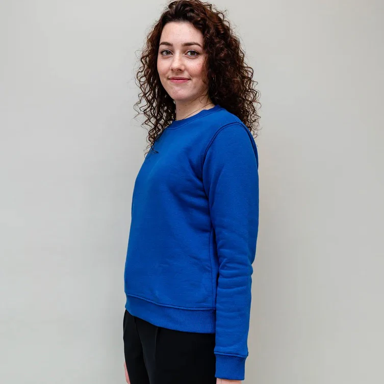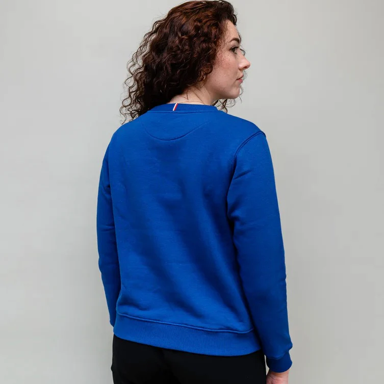 Sweat femme bleu Europe fabriqué en France, à Bobigny.
