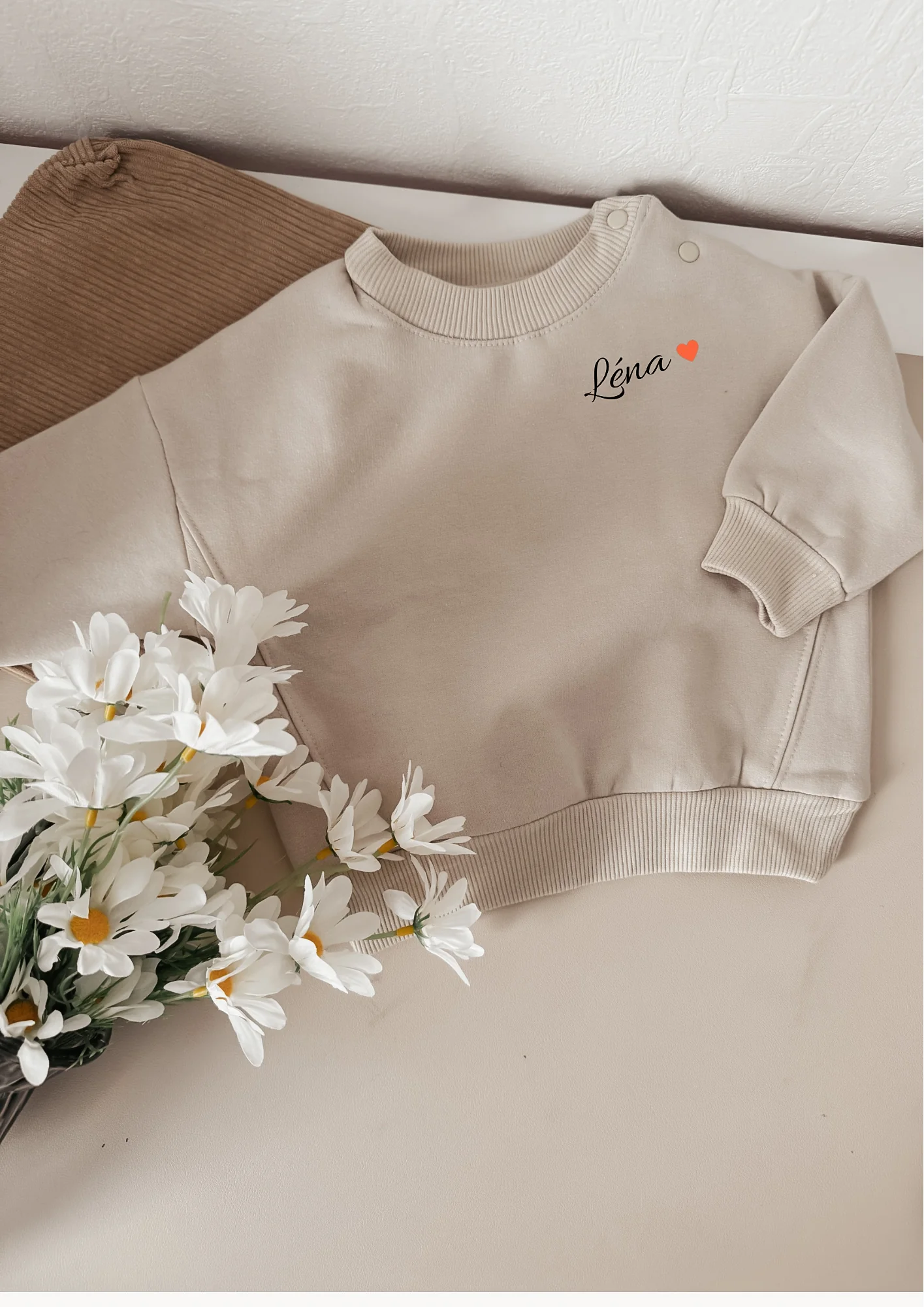 Envie d’un petit sweat à ton image ? Personnalisable avec la phrase ou le prénom de votre choix (merci de le préciser dans l’espace commentaire prévu à cet effet)